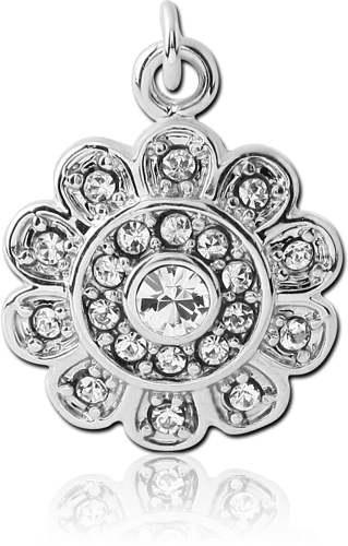 RHODIUM PLATED BASE METAL JEWELED CHARM