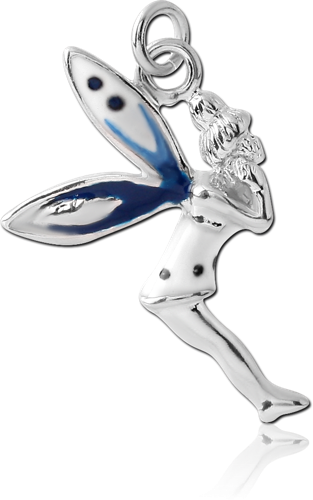 RHODIUM PLATED BASE METAL FAIRY WITH ENAMEL CHARM