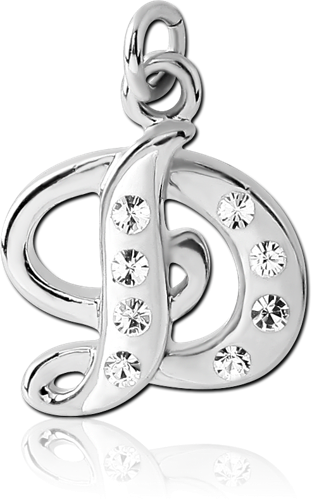 RHODIUM PLATED BASE METAL CRYSTALINE SCRIPT LETTER CHARM - D