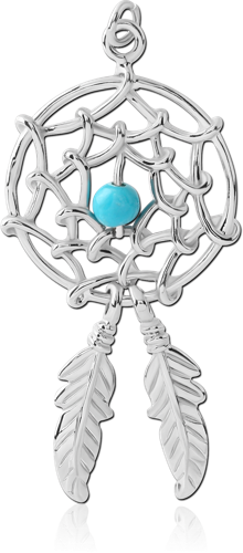 RHODIUM PLATED BASE METAL DREAMCATCHER CHARM WITH TWO FEATHERS