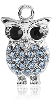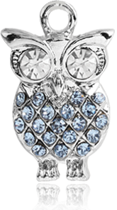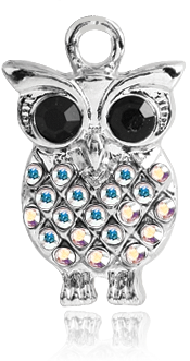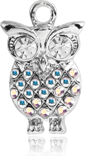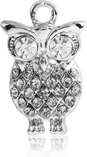 RHODIUM PLATED BASE METAL VALUE CRYSTALINE JEWELED OWL CHARM