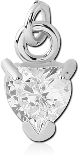 RHODIUM PLATED BASE METAL HEART JEWEL CHARM