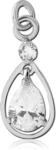 RHODIUM PLATED BASE METAL PRONG SET PEAR PREMIUM CRYSTAL JEWELED CHARM