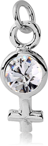 RHODIUM PLATED BASE METAL JEWELED FEMALE SYMBOL CHARM
