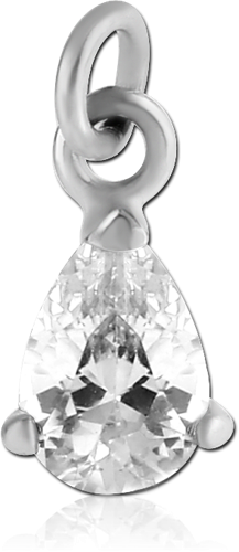 RHODIUM PLATED BASE METAL PRONG SET PEAR JEWELED CHARM