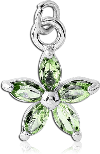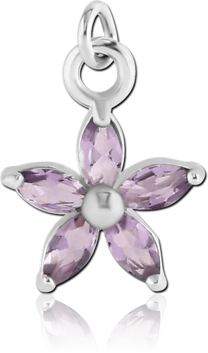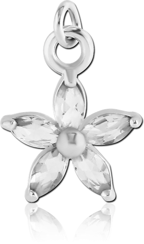 RHODIUM PLATED BASE METAL JEWELED FLOWER CHARM