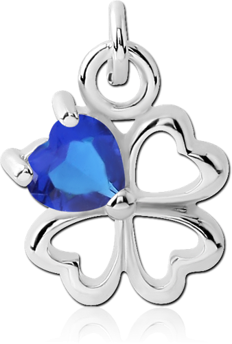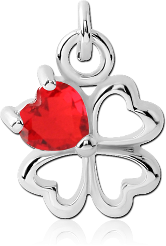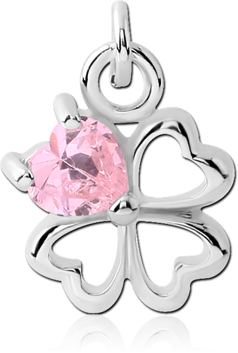 RHODIUM PLATED BASE METAL JEWELED CLOVER CHARM