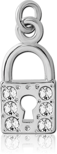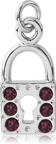 RHODIUM PLATED BASE METAL JEWELED LOCK CHARM