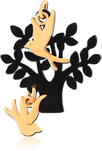 BLACK PVD COATED BASE METAL CHARM WITH GOLD PLATED PART - BIRDS AND TREE