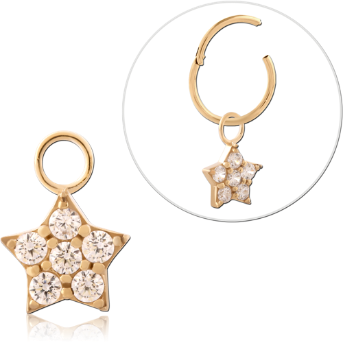 GOLD PVD 18K COATED SURGICAL STEEL GRADE 316L JEWELED CHARM