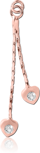 ROSE GOLD PLATED BASE METAL JEWELED CHARM - DOUBLE HEART DANGLE