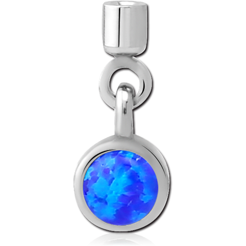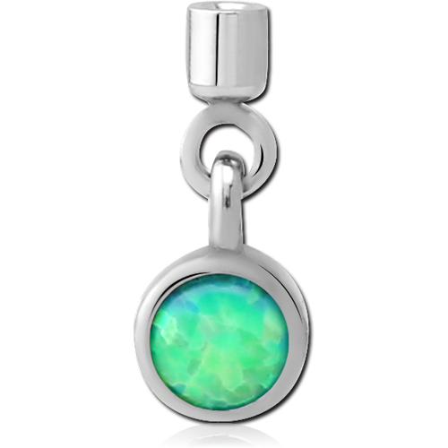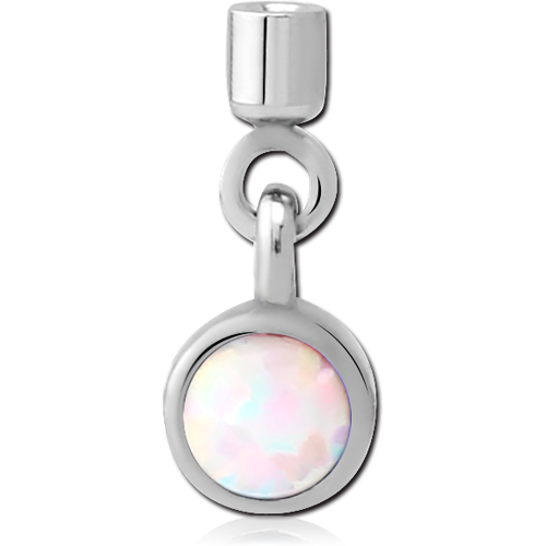 SURGICAL STEEL GRADE 316L ORGANIC SYNTHETIC OPAL SCREW ON CHARM WITH MICRO THREADED CUP - CIRCLE