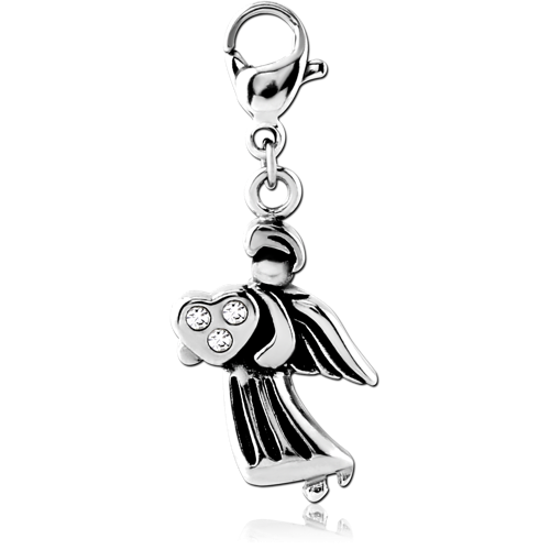 SURGICAL STEEL GRADE 316L JEWELED CHARM WITH LOBSTER LOCKER - CUPID