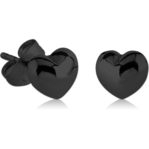 BLACK PVD COATED SURGICAL STEEL GRADE 316L HEART EAR STUDS