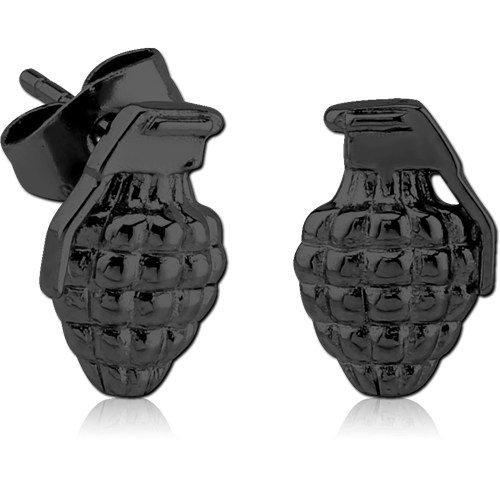 BLACK PVD COATED SURGICAL STEEL GRADE 316L GRENADE EAR STUDS