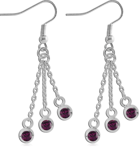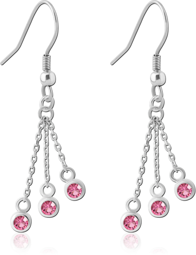RHODIUM PLATED BASE METAL JEWELED EARRINGS PAIR
