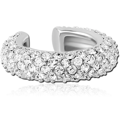 RHODIUM PLATED BASE METAL JEWELED EAR CUFF