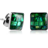 SURGICAL STEEL GRADE 316L ORGANIC SYNTHETIC MOTHER OF PEARL MOSAIC SQUARE CUP EAR STUDS PAIR