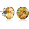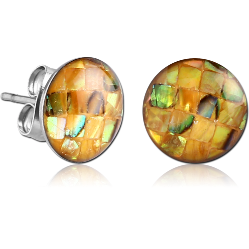 SURGICAL STEEL GRADE 316L ORGANIC SYNTHETIC MOSAIC MOTHER OF PEARL CUP EAR STUDS PAIR