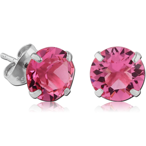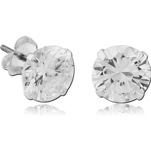 STERLING 925 SILVER PRONG SET JEWELED ROUND EAR STUDS - PAIR
