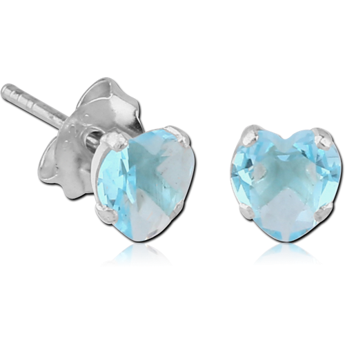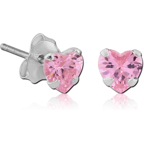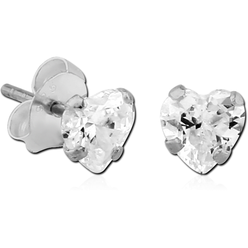 STERLING 925 SILVER PRONG SET JEWELED HEART EAR STUDS - PAIR