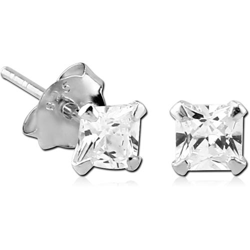 STERLING 925 SILVER PRONG SET JEWELED SQUARE EAR STUDS - PAIR