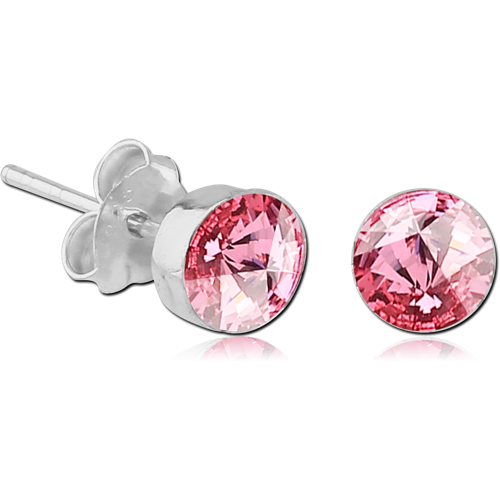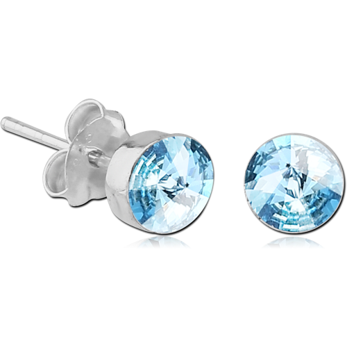STERLING 925 SILVER ROUND JEWELED EAR STUDS - PAIR