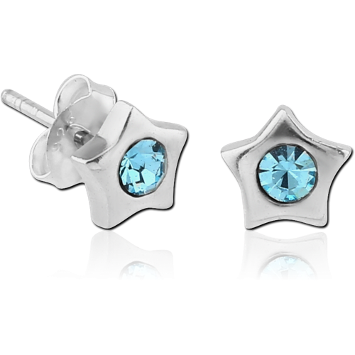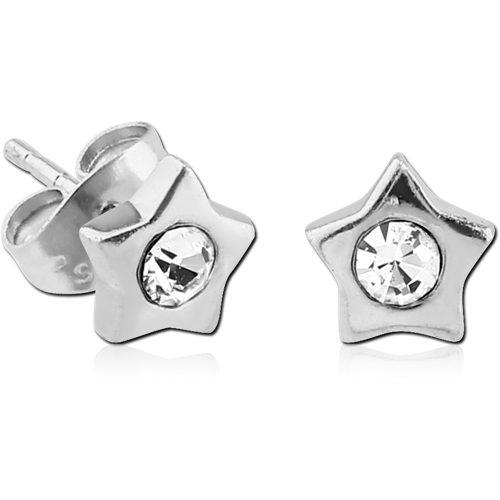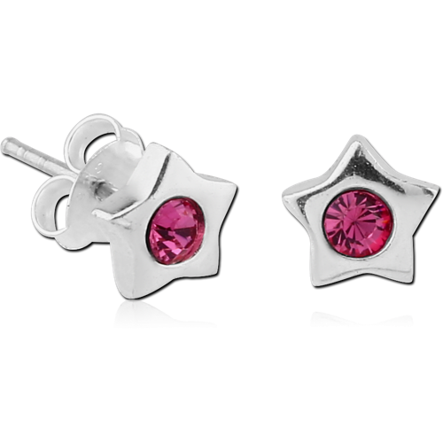 STERLING 925 SILVER STAR EAR STUDS WITH JEWEL - PAIR