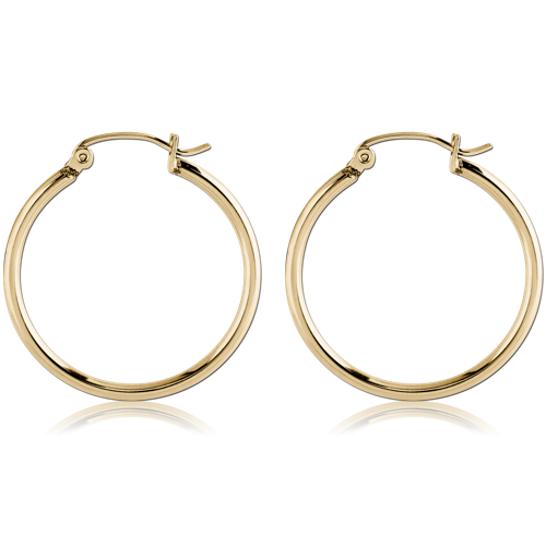 GOLD PVD 18K COATED SURGICAL STEEL GRADE 316L WIRE HOOP EARRINGS - ROUND