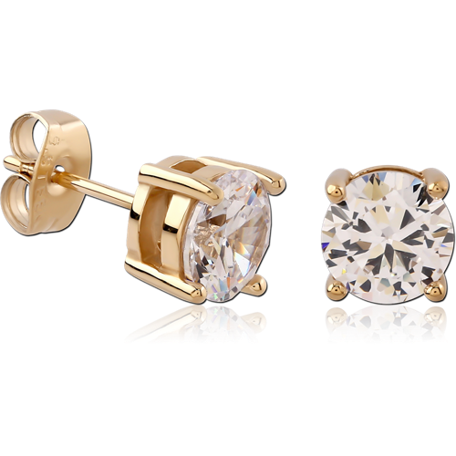 GOLD PVD 18K COATED SURGICAL STEEL GRADE 316L JEWELED EAR STUDS PAIR