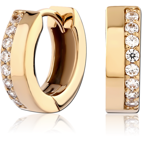 GOLD PVD 18K COATED SURGICAL STEEL GRADE 316L JEWELED HUGGIES PAIR