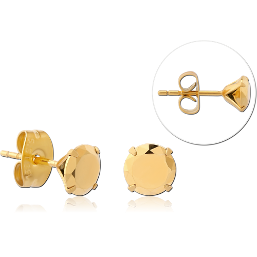 GOLD PVD 18K COATED SURGICAL STEEL GRADE 316L ROUND PRONG SET JEWELED EAR STUDS PAIR