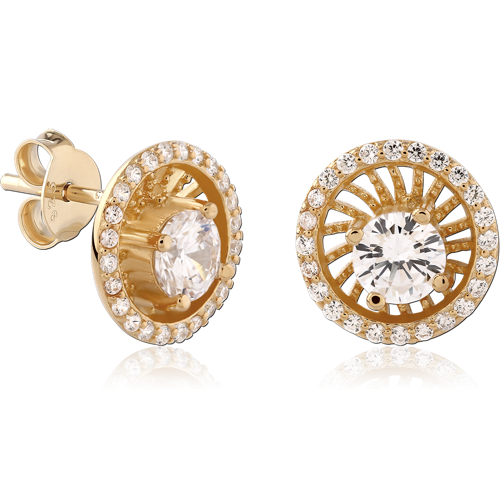 STERLING 925 SILVER GOLD PLATED 18K JEWELED EAR STUDS PAIR