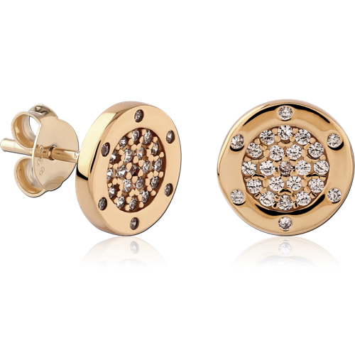 STERLING 925 SILVER GOLD PLATED 18K JEWELED EAR STUDS PAIR