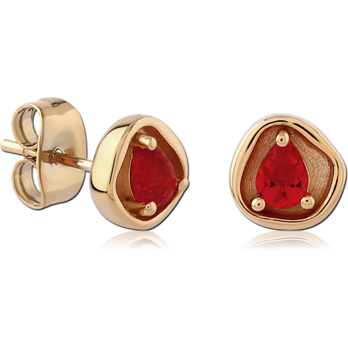 STERLING 925 SILVER GOLD PLATED 18K JEWELED EAR STUDS PAIR