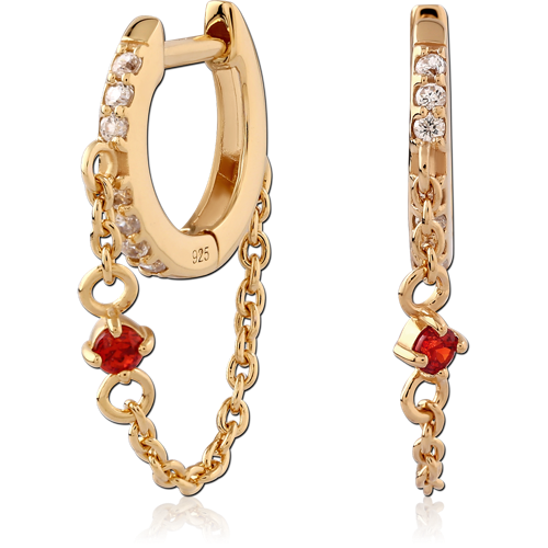 STERLING SILVER 925 18 KARAT GOLD YELLOW PLATED JEWELED HUGGIES PAIR