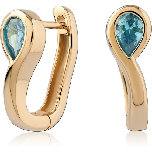 STERLING SILVER 925 18 KARAT GOLD YELLOW PLATED JEWELED HUGGIES PAIR