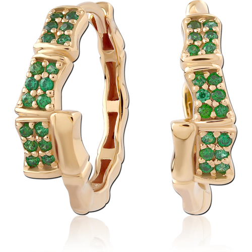 STERLING SILVER 925 18 KARAT GOLD YELLOW PLATED JEWELED HUGGIES PAIR