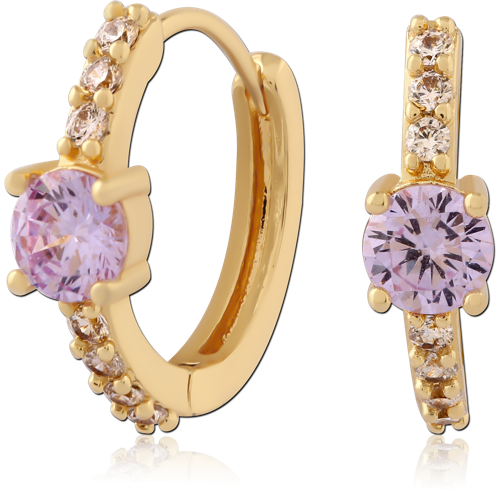 STERLING 925 SILVER GOLD PLATED 18K JEWELED HUGGIES PAIR SPECIAL NEW DESIGN