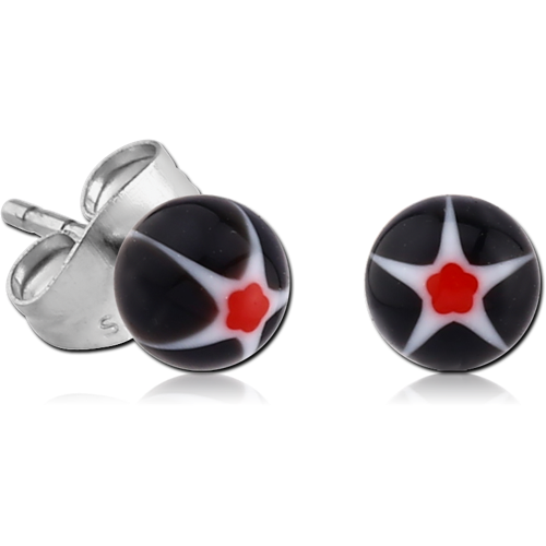 UV POLYMER GLITTERING MURANO BALL EAR STUDS PAIR