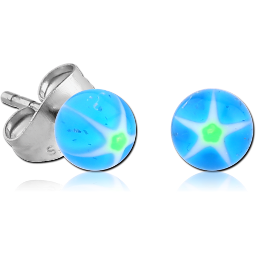 : SURGICAL STEEL GRADE 316L EAR POSTS AND BUTTERFLY CLUTCHES WITH UV POLYMER PARTS