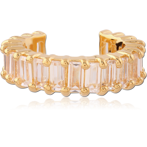 GOLD PVD COATED BASE METAL JEWELED EAR CUFF