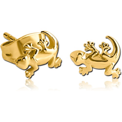 GOLD PVD COATED SURGICAL STEEL GRADE 316L EAR STUDS PAIR - SALAMANDER