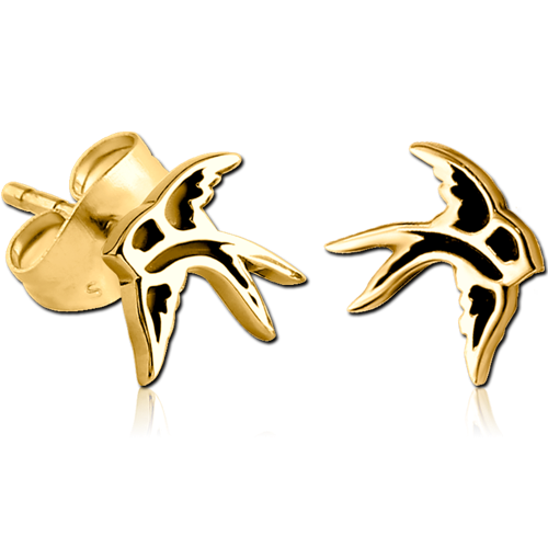 GOLD PVD COATED SURGICAL STEEL GRADE 316L EAR STUDS PAIR - BIRD
