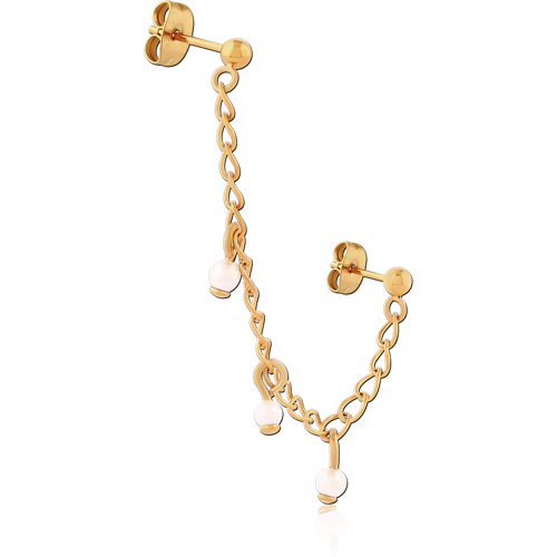 GOLD PVD COATED SURGICAL STEEL GRADE 316L EAR STUDS WITH CHAIN