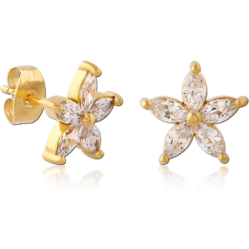 GOLD PVD COATED SURGICAL STEEL GRADE 316L JEWELED EAR STUDS PAIR