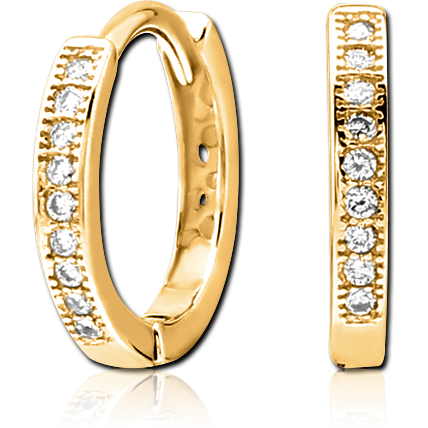 GOLD PVD COATED SURGICAL STEEL GRADE 316L JEWELED HUGGIES PAIR