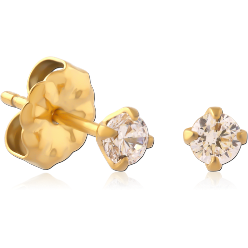 PAIR OF GOLD PVD COATED TITANIUM ALLOY ROUND PRONG SET JEWELED EAR STUDS