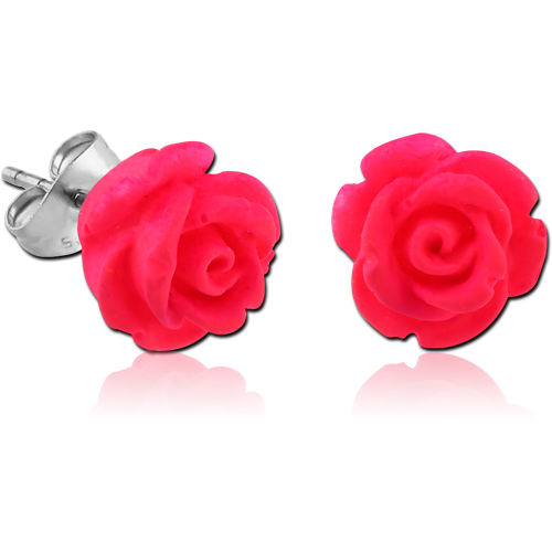 PAIR OF NEON UV POLYMER ROSE EAR STUDS