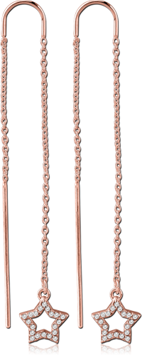 ROSE GOLD PVD COATED SURGICAL STEEL GRADE 316L CHAIN JEWELED EARRINGS PAIR - STAR